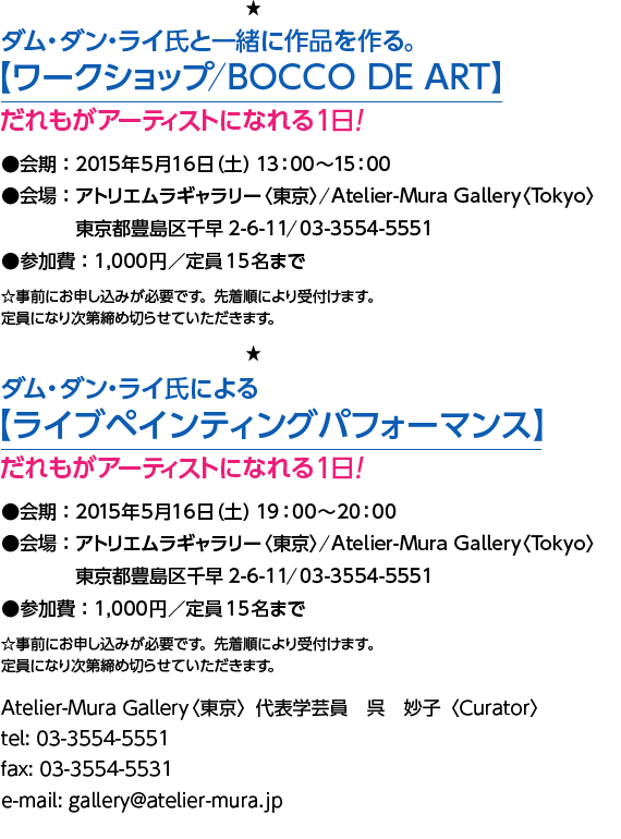 | 2014 | 「BOCCO DE ART/DamDangLai」展(アトリエムラギャラリー/東京) |