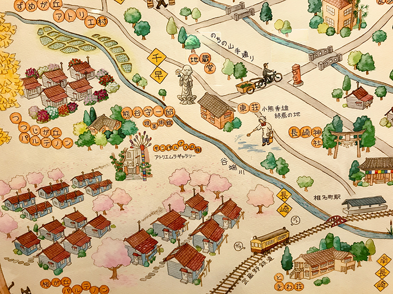 ●This area, which was once named "Ikebukuro Montparnasse" by the poet Hideo Oguma, is still alive today. Yukio Takano, Mayor of Toshima City, has a wonderful deep feeling for art. I made a pictorial map to record the former appearance of this Ikebukuro Monpulse area. (Picture / Yasuhiro Iwasaki) ■ Ikebukuro Montparnasse has several atelier villages around Nishiikebukuro, Shiinamachi, Chihayacho, Nagasaki, Minami Nagasaki, and Kanamecho, Toshima-ku, Tokyo from the end of the Taisho era to the end of World War II. It is the name of the area where many artists lived and used as a base for artistic activities. |